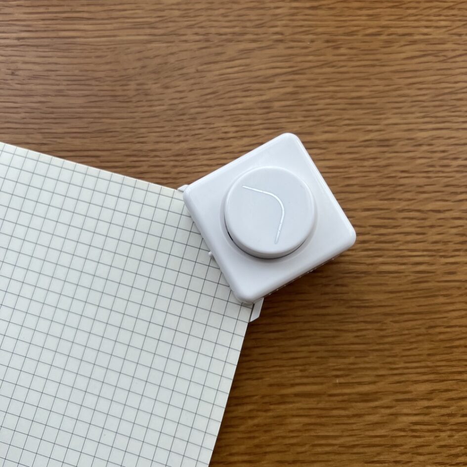 切れ味が悪くなった無印良品のコーナーカットパンチで、なんとか角を丸めて。。。