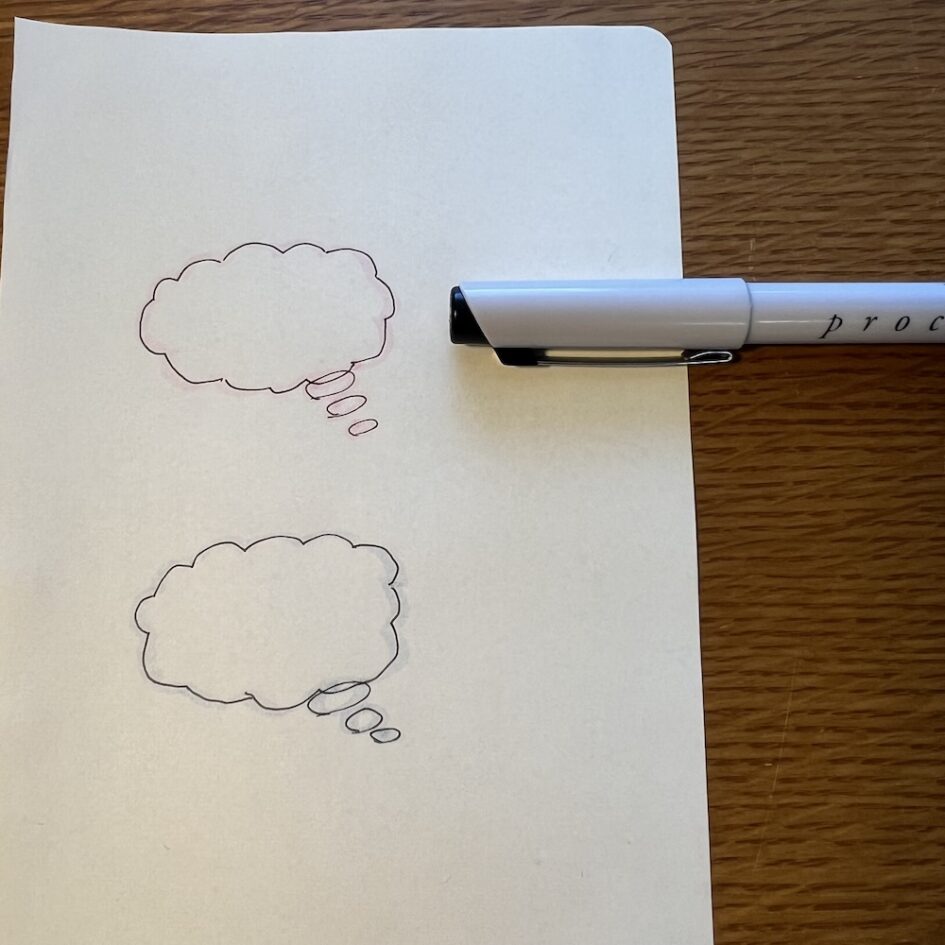 色ペンはマイルドライナーを使っている。タイトルで強調したいときに線を引いたり、吹き出しで使ったり、モレスキンを読み返したときに大切なところに線を引いたり。